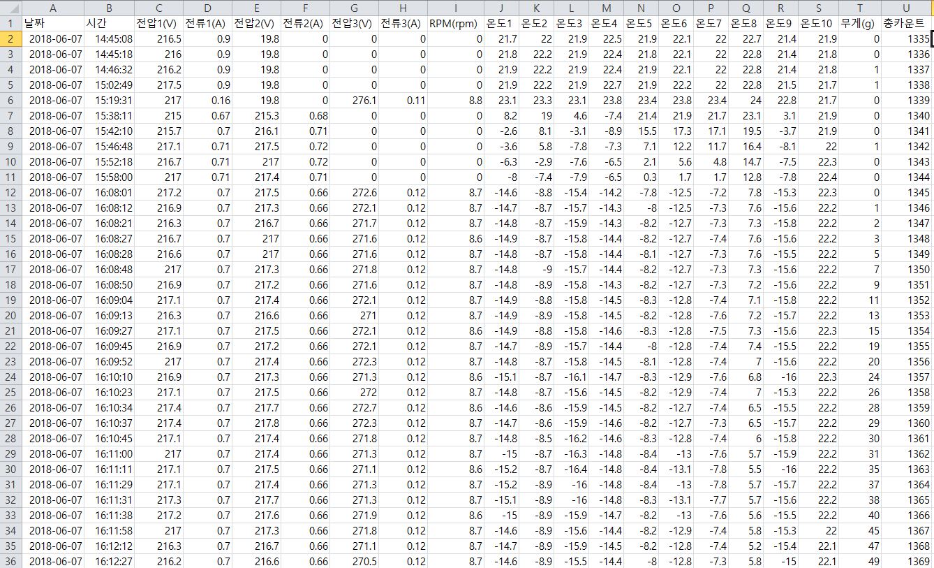- 자동제어시스템에 맞추어 원하는 데이터를 취득하여 USB or SD 메모리 카드에 CSV파일로 저장